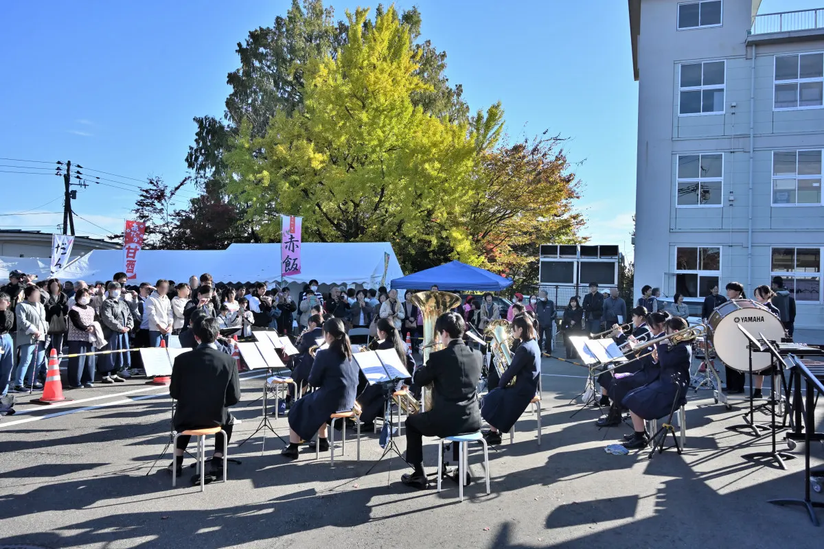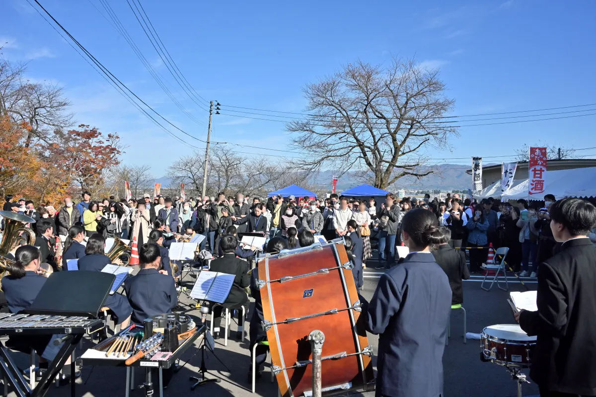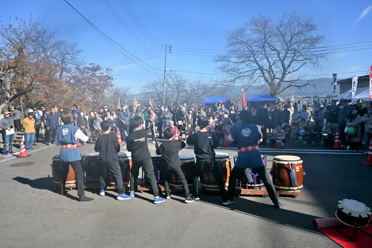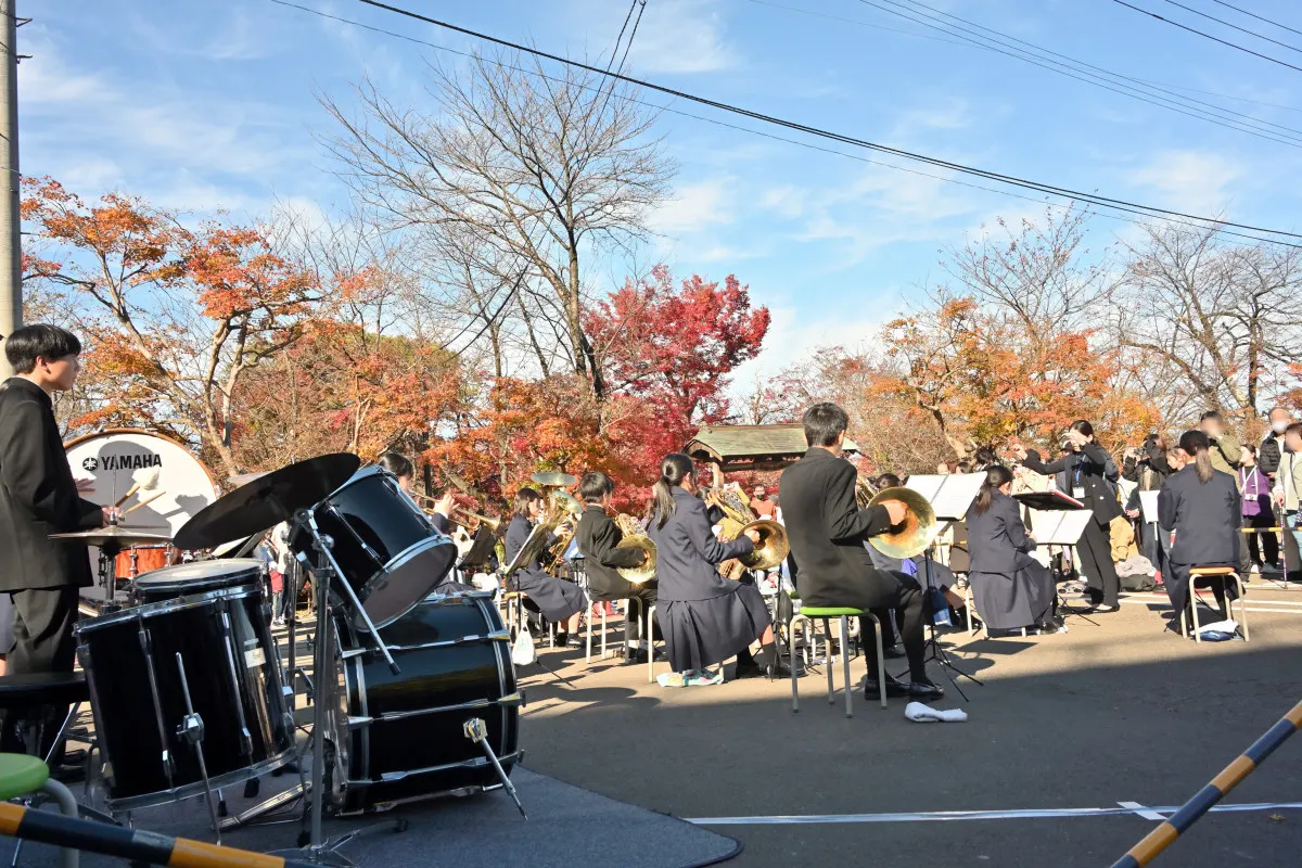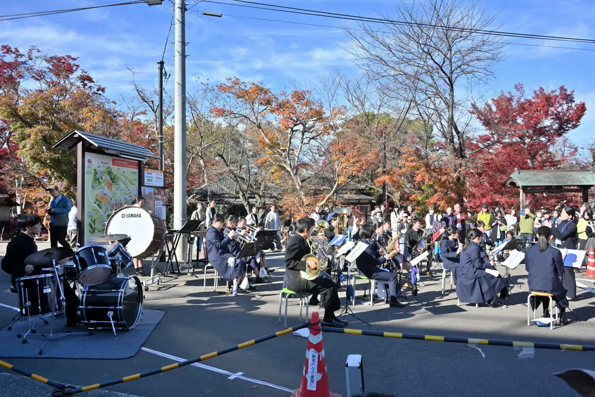 この日は、もみじまつりのイベント「もみじ園アウトドアコンサート」でこしじ巴太鼓、越路中学校吹奏楽部が演奏してくれました。